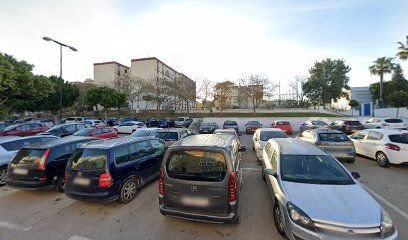 Aprovechamiento del espacio en la trasera de los bloque esta bolsa de aparcamiento tiene una entrada a la calle del lateral del cementerio lo que facilita el aparcamiento cuando uno va al campo santo, este aparcamiento esta pegado al IES Botánico y muy próximo al CEIP Servando Camúñez las plaza de aparcamiento están bien delimitadas y son amplias cuenta con iluminación con unos proyectores y entre las plazas hay arboles que algo de sombra dan.