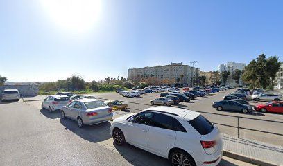 Gran Bolsa de aparcamiento con muchas plazas de aparcamiento y buena iluminación, aunque en unas de sus partes hay una zona con mucha maleza que eso puede con llevar un riesgo de incendios en verano.